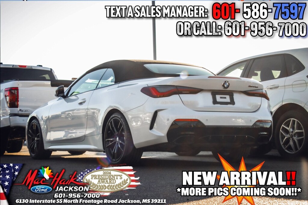 Mineral White Metallic 2024 BMW 4 Series M440i RWD 8-Speed Automatic Sport 3.0L I6 4 Series M440i, 2D Convertible, 3.0L I6, 8-Speed Automatic Sport, RWD, 4-Wheel Disc Brakes, Active Park Distance Control, AM/FM radio: SiriusXM with 360L, Auto High-beam Headlights, Automatic temperature control, Black Mirror Caps, BMW Curved Display w/HUD, Connected Package Pro, Driver Width Adjustment, Electronic Stability Control, Extended Shadowline Trim, Exterior Parking Camera Rear, Four wheel independent suspension, Fully automatic headlights, harman/kardon Surround Sound System, Heated Front Seats, Heated Steering Wheel, Hi-Fi Sound System, Lumbar Support, M Shadowline Lights, M Sport Brakes w/Red Calipers, M Sport Package Pro, Memory seat, Navigation System, Parking Assistance Package, Parking Assistant Plus, Premium Package, Rear-View Camera, Shadowline Package, Speed-sensing steering, Steering wheel mounted audio controls, Surround View w/3D View, Traction control, Vernasca Leather Upholstery, Wheels: 19" x 8" Fr & 19" x 8.5" Rr (Style 791M), Wireless Device Charging.