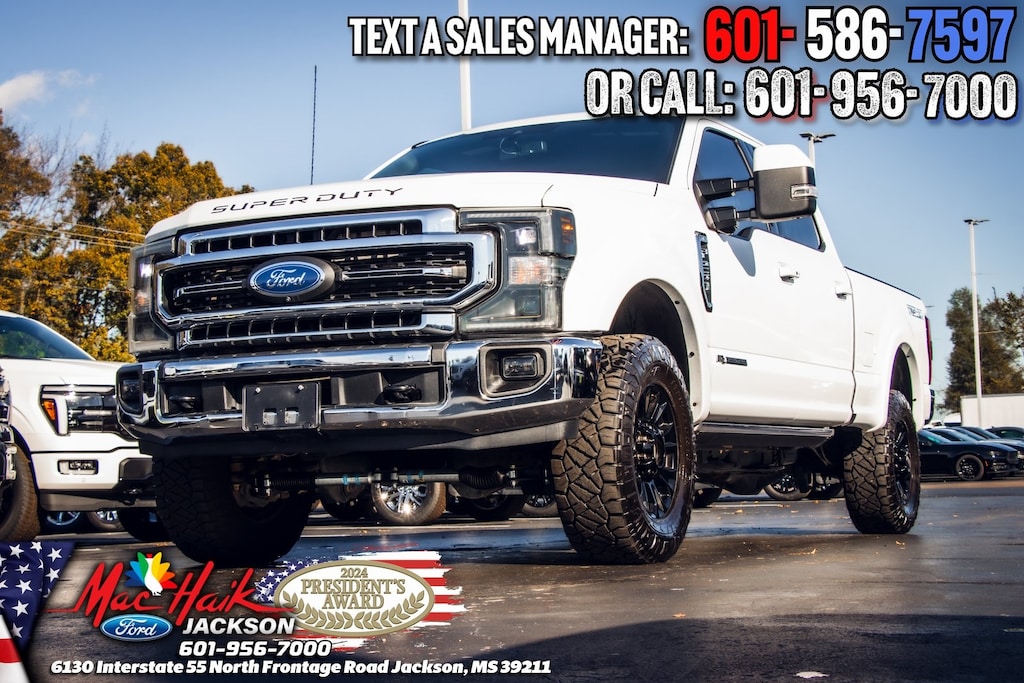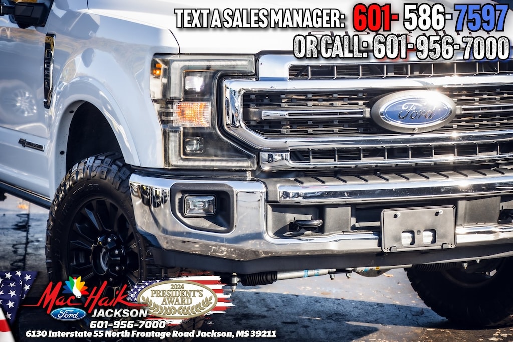 Oxford White 2022 Ford F-250SD Lariat 4WD 10-Speed Automatic Power Stroke 6.7L V8 DI 32V OHV Turbodiesel TREMOR PACKAGE, F-250 SuperDuty Lariat, 4D Crew Cab, Power Stroke 6.7L V8 DI 32V OHV Turbodiesel, 4WD, 34 Gallon Fuel Tank, 397 Amp Alternator, 4-Wheel Disc Brakes, 5th Wheel/Gooseneck Hitch Prep Package, Advanced Security Pack Inclination Sensor Removal, AM/FM radio: SiriusXM with 360L, Ambient Lighting - Fixed Color, Auto High-beam Headlights, Body-Color Wheellip Moldings, Brake assist, Easy Entry®/Exit Memory Driver's Seat Feature, Electronic-Locking w/3.55 Axle Ratio, Exterior Parking Camera Rear, Flow-Through Console, Front Leather Seating Surfaces 40/Console/40, Fully automatic headlights, GVWR: 10,000 lb Payload Package, High Capacity Trailer Tow Package, Intelligent Access w/Push-Button Start, Lane Departure Warning System, Lariat Ultimate Package, LED Box Lighting, Memory Power-Adjustable Pedals, Navigation system: Connected Navigation, Order Code 608A, Power Heated/Ventilated Driver Seat w/Memory, Power Heated/Ventilated Passenger Seat, Power Telescoping/Tilt Steering Wheel/Column, PowerScope Trailer Tow Mirrors w/Memory, Pro Trailer Backup Assist, Pro Trailer Backup Assist - High Capacity, Radio: B&O Sound System by Bang & Olufsen, Remote Start System, Remote Tailgate Release, SiriusXM Radio w/360L, Steering wheel mounted audio controls, SYNC 4 w/Enhanced Voice Recognition, Tailgate Step & Handle, Textured Matte Finish Off-Road Running Boards, Tough Bed Spray-In Bedliner, Tremor Off-Road Decal, Tremor Off-Road Package, Twin Panel Power Moonroof, Ultimate Trailer Tow Camera System, Wheels: 18" Low-Gloss Black Painted Aluminum.