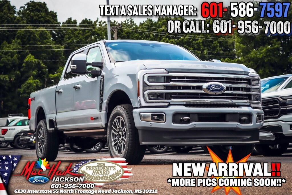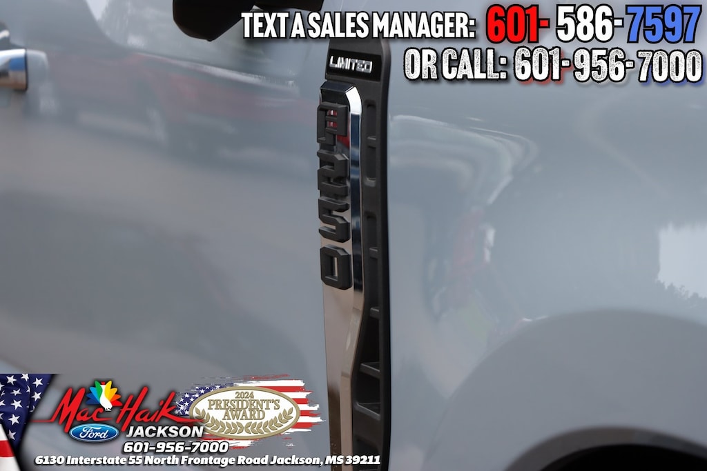 Glacier Gray Metallic Tri-Coat 2024 Ford F-250SD Limited 4WD 10-Speed Automatic 6.7L High Output Power Stroke V8 Diesel F-250SD Limited, 4D Crew Cab, 6.7L High Output Power Stroke V8 Diesel, 10-Speed Automatic, 4WD, Glacier Gray Metallic Tri-Coat, ABS brakes, Alloy wheels, Compass, Electronic Stability Control, F-250 >10K GVWR Package, Front dual zone A/C, FX4 Off-Road Package, Heated door mirrors, Heated front seats, Heated rear seats, Hill Descent Control, Illuminated entry, Low tire pressure warning, Navigation system: Connected Navigation (includes complimentary 1-year trial), Off-Road Specifically Tuned Shock Absorbers, Power moonroof, Remote keyless entry, Traction control, Unique FX4 Off-Road Box Decal.