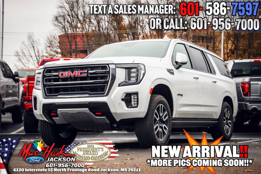 White Frost Tricoat 2024 GMC Yukon XL AT4 4WD 10-Speed Automatic with Overdrive EcoTec3 6.2L V8 Yukon XL AT4, 4D Sport Utility, EcoTec3 6.2L V8, 4WD, 12-Way Power Seat Adjusters, 2 Presets For Outside Rearview Mirrors, 3.23 Rear Axle Ratio, 3rd Row 60/40 Power-Folding Split-Bench Seat, AM/FM radio: SiriusXM with 360L, AT4 Premium Plus Package, Black Roof-Mounted Luggage Rack Side Rails, Bose 9-Speaker Stereo Audio System Feature, Bright Front & Rear Door Sill Plates, Dual-Pane Panoramic Power Sunroof, Electronic Stability Control, Front High-Approach Angle Fascia, Hands-Free Power Programmable Rear Liftgate, Heated 2nd Row Outboard Position Seats, Heated Driver & Front Passenger Seats, Heated Steering Wheel, Heavy-Duty Air Filter, Hill Descent Control, Inside Rear-View Auto-Dimming Mirror, Max Trailering Package, Navigation System, Outside Heated Power-Adjustable Mirrors, Perforated Heated & Ventilated Dr & Frt Pass Seats, Power Liftgate, Power Release 2nd Row 60/40 Split-Folding Bench Seat, Power Tilt & Telescopic Steering Column, Power-Retractable Assist Steps, Preferred Equipment Group 4SB, Premium Capability Package w/Active Response 4WD, Red Horizontal-Mounted Recovery Hooks, Safety Alert Seat, Technology Package, Universal Home Remote, Wheels: 20" x 9" 6-Spoke Machined Aluminum, Wireless Charging.