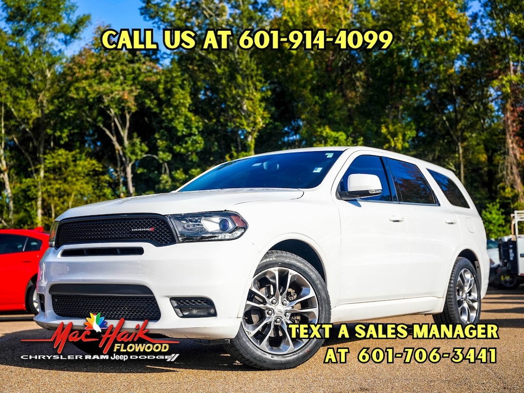 Vice White 2019 Dodge Durango GT Plus RWD 8-Speed Automatic 3.6L V6 24V VVT Local Trade, 115V Auxiliary Power Outlet, Auto-Dimming Exterior Driver Mirror, Bright Cargo Area Scuff Pads, Bright Front Door Sill Scuff Pads, Dual Remote USB Port - Charge Only, Exterior Mirrors w/Memory, Exterior Mirrors w/Supplemental Signals, Heated Front Seats, Heated Second Row Seats, Heated Steering Wheel, Power 6x9 Multi-Function Foldaway Mirrors, Power 8-Way Driver Memory 6-Way Passenger Seats, Power Driver/Passenger 4-Way Lumbar Adjust, Power Liftgate, Quick Order Package 2BE GT Plus, Radio/Driver Seat/Mirrors Memory, Remote Start System, Security Alarm, Sun Visors w/Illuminated Vanity Mirrors, Universal Garage Door Opener.