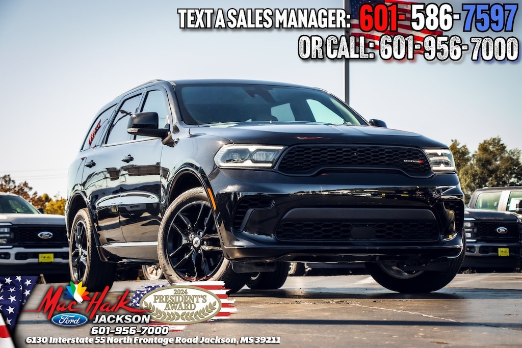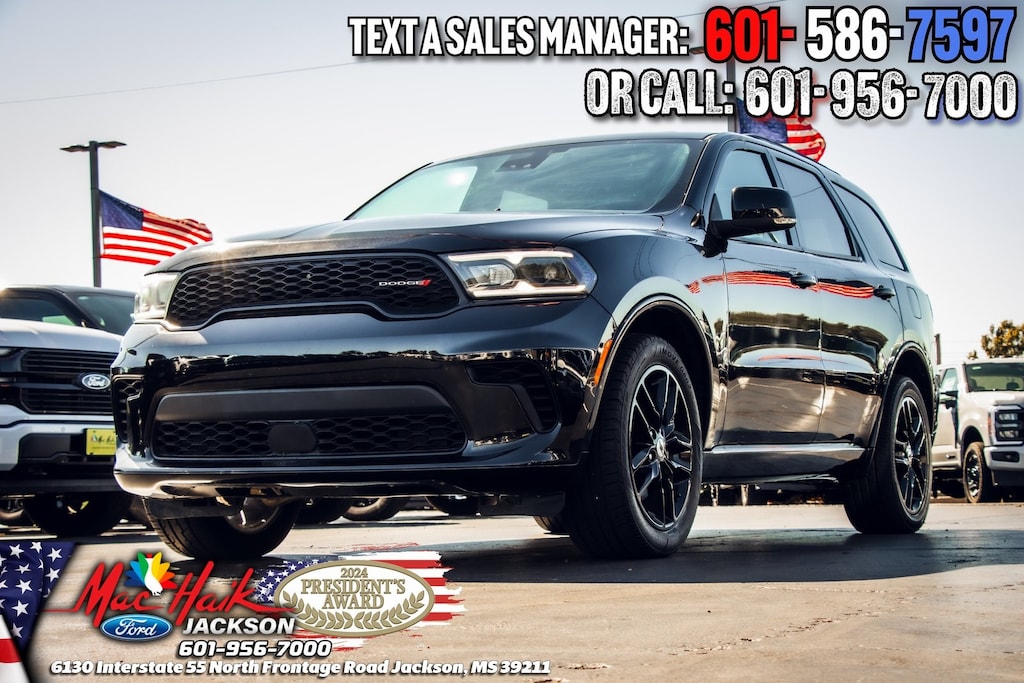 DB Black Crystal Clearcoat 2024 Dodge Durango GT Plus AWD 8-Speed Automatic 3.6L V6 24V VVT Durango GT Plus, 4D Sport Utility, 3.6L V6 24V VVT, 8-Speed Automatic, AWD, DB Black Crystal Clearcoat, Black Leather, 1-Year Trial (Registration Required), 10.1" Touchscreen Display, 115V Auxiliary Power Outlet, 180 Amp Alternator, 4G LTE Wi-Fi Hot Spot, 7 & 4 Pin Wiring Harness, Adaptive Cruise Control w/Stop, Apple CarPlay, Auto-Dimming Exterior Driver Mirror, Black Roof Rails, Blind Spot w/Trailer Detection, Class IV Receiver Hitch, Connected Travel & Traffic Services, Disassociated Touchscreen Display, Dual Remote USB Port - Charge Only, Exterior Mirrors w/Heating Element, Exterior Mirrors w/Memory, Exterior Mirrors w/Supplemental Signals, Floor Console w/Leather Armrest, For Details Visit DriveUconnect.com, Full Speed Forward Collision Warning Plus, Global Telematics Box Module (TBM), Gloss Black Exterior Mirrors, Google Android Auto, GPS Antenna Input, GPS Navigation, HD Radio, Heated Second Row Seats, Heavy-Duty Engine Cooling, Integrated Center Stack Radio, Integrated Roof Rail Crossbars, Integrated Voice Command w/Bluetooth, Leather Trimmed Bucket Seats, Leather Wrapped Door Panels, LED Auxiliary Low Beam & Turn Signal, Power 6x9 Multi-Function Foldaway Mirrors, Power 8-Way Driver Memory 8-Way Passenger Seats, Power Driver/Passenger 4-Way Lumbar Adjust, Power Sunroof, Power Tilt & Telescopic Steering Column, Quick Order Package 2BG GT Plus, Radio: Uconnect 5 Nav w/10.1" Display, Radio/Driver Seat/Mirrors Memory, Rear Load Leveling Suspension, Red Accent Stitching, SiriusXM Guardian - Included Trial (B), SiriusXM w/360L, Trailer Brake Control, USB Host Flip, Ventilated Front Seats.