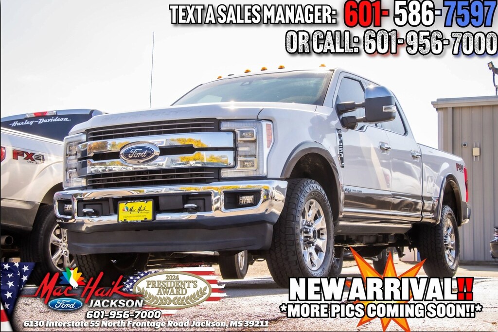 White Platinum 2017 Ford F-250SD King Ranch 4WD TorqShift 6-Speed Automatic Power Stroke 6.7L V8 DI 32V OHV Turbodiesel F-250 SuperDuty King Ranch, 4D Crew Cab, Power Stroke 6.7L V8 DI 32V OHV Turbodiesel, 4WD, White Platinum, Java w/Unique King Ranch Leather 40/Console/40 Front Seats, 34 Gallon Fuel Tank, 6" Angular Chrome Step Bars, Adaptive Steering, Auto High-beam Headlights, Automatic High Beam, BLIS Blind Spot Information System, Body-Color Door Handles w/Chrome Insert, Chrome Exhaust Tip, Chrome Front & Rear Bumpers, Chrome Package, Delay-off headlights, Electronic-Locking w/3.55 Axle Ratio, Flow-Through Console, Fully automatic headlights, GVWR: 10,000 lb Payload Package, King Ranch Ultimate Package, Lane-Keeping Alert, Multi-Contour Seats, Navigation System, Order Code 700A, Power-Deployable Running Boards, Quad Beam LED Headlamps & LED Taillamps, Tailgate Step & Handle, Tow Technology Bundle, Twin Panel Power Moonroof, Ultimate Trailer Tow Camera System, Unique Chrome Mirror Caps, Unique King Ranch Leather 40/Console/40 Front Seats, Ventilated front seats, Wheels: 20" Chrome PVD Aluminum.