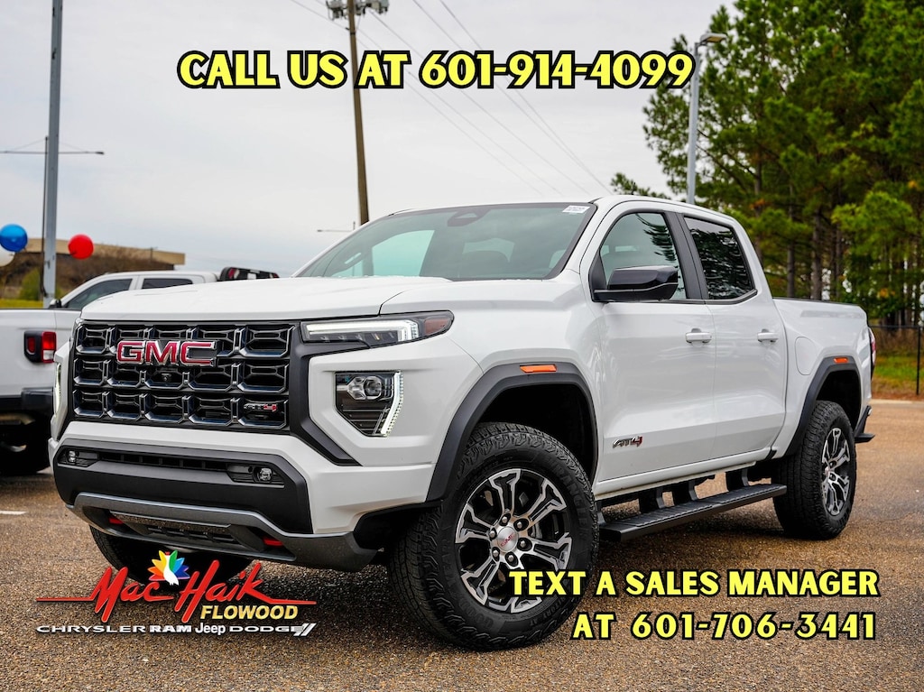 Summit White 2023 GMC Canyon AT4 4WD 8-Speed Automatic 2.7L Turbo Local Trade, 4WD, 120-Volt Bed Mounted Power Outlet, 2 Rear USB Ports in Center Console (Charge-Only), 6-Way Power Passenger Seat Adjuster, 8-Way Power Driver Seat Adjuster, AT4 Premium Package, Automatic Locking Rear Differential, Canyon Pro Safety, Canyon Safety Plus Package, Driver & Front Passenger Illuminated Visors, Driver & Front Passenger Ventilated Seats, Driver Memory, Driver Seatback Map Pocket, Dual-Zone Automatic Air Conditioning, EZ-Lift & Lower Tailgate, Front LED Fog Lamps, Heated Driver & Front Passenger Seats, Heated Power-Adjustable Outside Mirrors, Heated Steering Wheel, Inside Rear-View Auto-Dimming Mirror, Interior Overhead Courtesy Light w/Dual Reading Lamp, Manual Rear-Sliding Window, Multicolor 6.3" Diagonal Head-Up Display, MultiStow Tailgate, Perforated Leather-Appointed Seat Trim, Power Driver Lumbar Control Seat Adjuster, Power Passenger Lumbar Control Seat Adjuster, Preferred Equipment Group 4SG, ProGrade Trailering System, Rear Center Fold-Down Armrest w/2 Cupholders, Rear of Console 120-Volt Power Outlet, Rear-Window Electric Defogger, Remote Vehicle Starter System, Skid Plate Package (LPO), Tailgate Keyed Cylinder Lock, Technology Plus Package, Tilt & Telescopic Manual Steering Column, Trailering App System, Trailering Package, Wireless Charging.