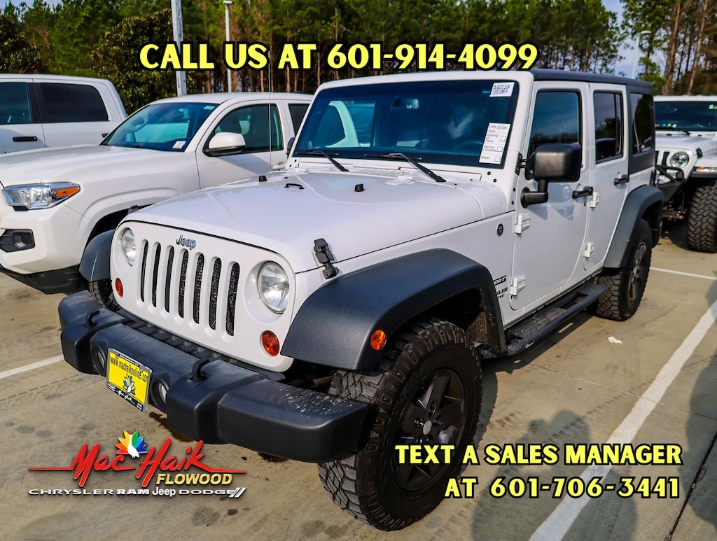 Bright White Clearcoat 2013 Jeep Wrangler Unlimited Sport 4WD 5-Speed Automatic 3.6L V6 24V VVT Local Trade, Black 3-Piece Hard Top, Connectivity Group, Freedom Panel Storage Bag, Leather Wrapped Steering Wheel, Rear Window Defroster, Rear Window Wiper/Washer, Remote USB Port, Tinted Rear Quarter & Liftgate Windows, Tire Pressure Monitoring Display, Uconnect Voice Command w/Bluetooth, Vehicle Information Center.