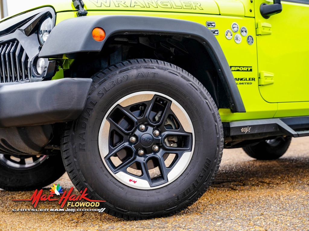 Hypergreen Clearcoat 2017 Jeep Wrangler Unlimited Sport 4WD 5-Speed Automatic 3.6L V6 24V VVT Local Trade, 17" x 7.5" Aluminum Wheels, Auto-Dimming Mirror w/Reading Lamp, Connectivity Group, Deep Tint Sunscreen Windows, Front 1-Touch Down Power Windows, Leather Wrapped Steering Wheel, Power Convenience Group, Power Heated Mirrors, Power Locks, Quick Order Package 24S, Remote Keyless Entry, Remote USB Port, Security Alarm, Tire Pressure Monitoring Display, Uconnect Voice Command w/Bluetooth, Vehicle Information Center.