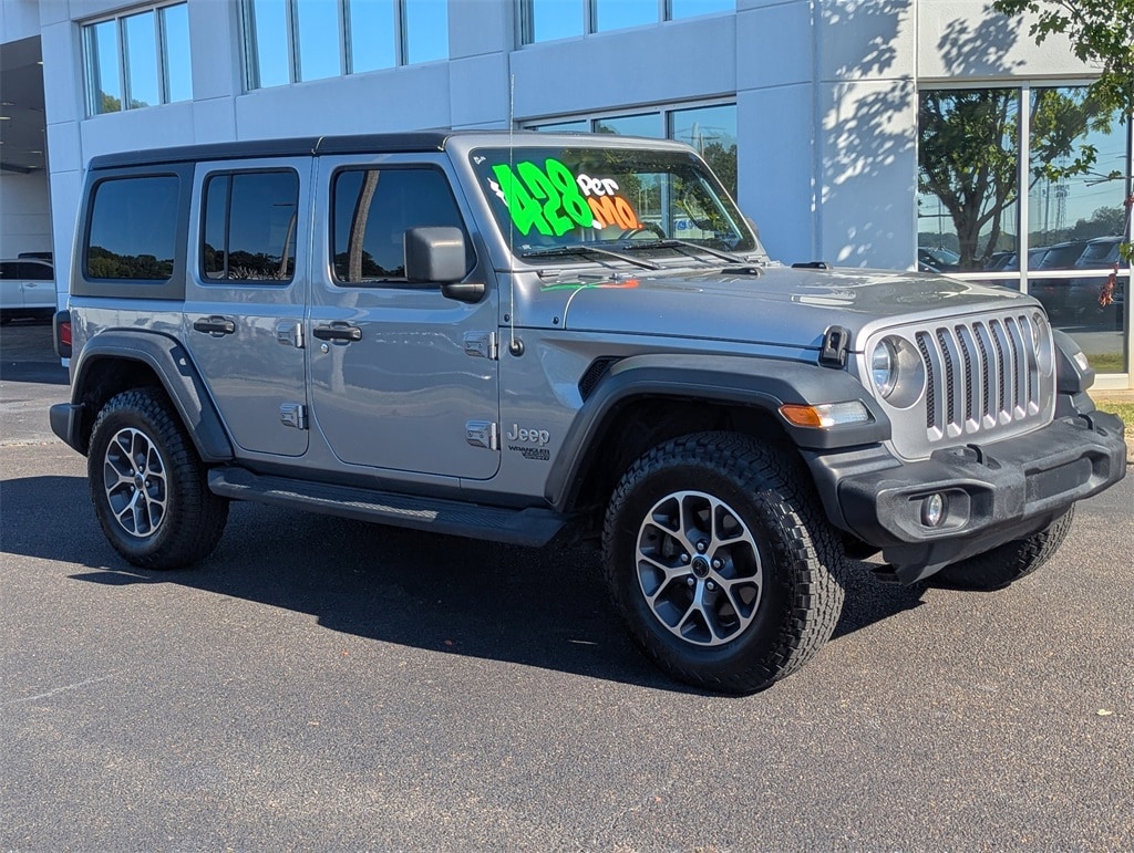 Billet Silver Metallic Clearcoat 2020 Jeep Wrangler Unlimited Sport S 4WD 8-Speed Automatic 2.0L I4 DOHC Wrangler Unlimited Sport S, 4D Sport Utility, 2.0L I4 DOHC, 4WD, Billet Silver Metallic Clearcoat, Black Cloth, 7.0" Touchscreen Display, Air Conditioning w/Auto Temperature Control, Air Filtering, Apple CarPlay, Automatic Headlamps, Cluster 7.0" TFT Color Display, Deep Tint Sunscreen Windows, Front 1-Touch Down Power Windows, Google Android Auto, GPS Antenna Input, Integrated Center Stack Radio, Leather Wrapped Steering Wheel, Power Heated Mirrors, Quick Order Package 22S Sport S, Radio: Uconnect 4 w/7" Display, Remote Keyless Entry, Security Alarm, SiriusXM Satellite Radio, Speed Sensitive Power Locks, Sun Visors w/Illuminated Vanity Mirrors, Technology Group, USB Host Flip, Wheels: 17" x 7.5" Tech Silver Aluminum.