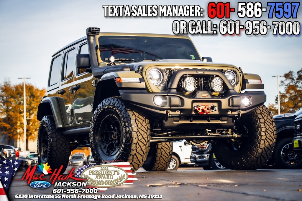 41 2025 Jeep Wrangler Rubicon AEV Edition 4WD 8-Speed Automatic 3.6L V6 24V VVT Wrangler Rubicon AEV Edition, 4D Sport Utility, 3.6L V6 24V VVT, 8-Speed Automatic, 4WD, 41, Black Leather, 35" Tire Suspension, 4.56 Rear Axle Ratio, 97 MPH Vehicle Max Speed Calibration, ABS brakes, Alloy wheels, Anti-Lock 4-Wheel Disc Perf Brakes, Compass, Convenience Group, Delay-off headlights, Electronic Stability Control, Front dual zone A/C, Fully automatic headlights, Heated door mirrors, Heated Front Seats, Heated Steering Wheel, Illuminated entry, Low tire pressure warning, Navigation System, ParkView Rear Back-Up Camera, Performance Suspension, Quick Order Package 24R Rubicon, Radio: Uconnect 5 w/12.3" Display, Remote keyless entry, Traction control, Universal Garage Door Opener, Wheels: 17" x 8" Machined w/Black Pockets, Xtreme 35" Tire Package.
