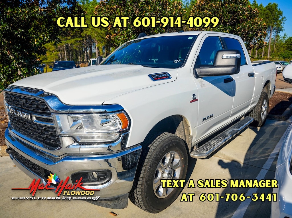 Bright White Clearcoat 2024 Ram 2500 Big Horn 4WD 6-Speed Automatic Cummins 6.7L I6 Turbodiesel One Owner, 2nd Row In Floor Storage Bins, 4G LTE Wi-Fi Hot Spot, 8.4" Touchscreen Display, Apple CarPlay, Auto Power-Folding Mirrors, Big Horn IP Badge, Black Exterior Mirrors, Bluetooth Handsfree Phone & Audio, Center Hub, Connectivity - US/Canada, Dual Glove Boxes, Exterior Mirrors Courtesy Lamps, Exterior Mirrors w/Heating Element, Exterior Mirrors w/Supplemental Signals, Foam Bottle Insert (Door Trim Panel), Footwell Courtesy Lamp, For Details, Visit DriveUconnect.com, For More Info, Call 800-643-2112, Forward & Reverse Utility Lights, Front Fog Lamps, Global Telematics Box Module (TBM), Glove Box Lamp, Google Android Auto, GPS Antenna Input, Integrated Center Stack Radio, Integrated Voice Command w/Bluetooth, Leather Wrapped Steering Wheel, Level 1 Equipment Group, Locking Lower Glove Box, Mirror Running Lights, Power Adjust Mirrors, Power Adjustable Convex Aux Mirrors, Power Heated Fold Telescope Mirrors, Power Telescoping Mirrors, Premium Cloth 40/20/40 Bench Seat, Radio: Uconnect 5 W w/8.4" Display (A62), Rear Dome w/On/Off Switch Lamp, Selectable Tire Fill Alert, SiriusXM Radio Service, SiriusXM Satellite Radio, Steering Wheel Mounted Audio Controls, Wheels: 18" x 8.0" Polished Aluminum.