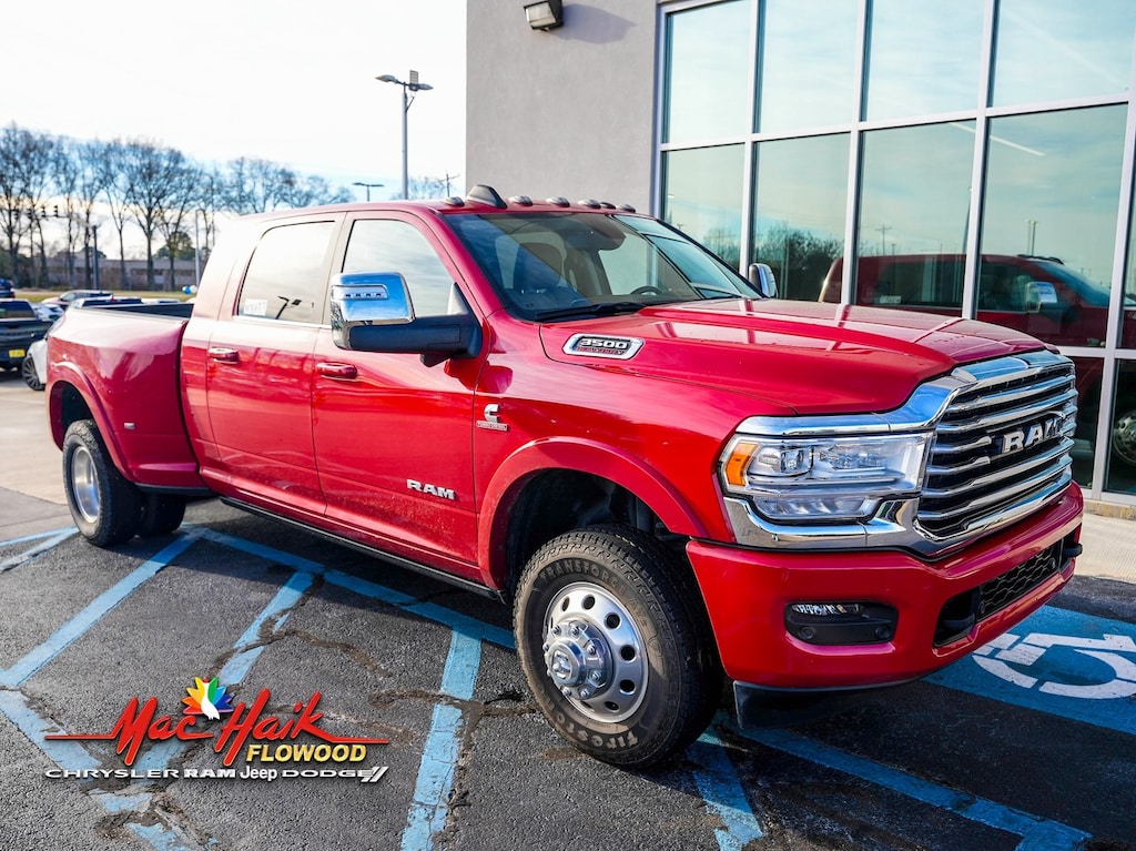Flame Red Clearcoat 2024 Ram 3500 Laramie Longhorn Mega Cab 4WD Aisin 6-Speed Automatic 6.7L I6 Local Trade, 12" Touchscreen Display, 17 Speaker harman/kardon Premium Sound, 4G LTE Wi-Fi Hot Spot, Alexa Built-In, Apple CarPlay, Blind Spot & Cross Path Detection, Center Stop Lamp w/Cargo View Camera, Connected Travel & Traffic Services, Connectivity - US/Canada, Disassociated Touchscreen Display, For Details Visit DriveUconnect.com, For More Info, Call 800-643-2112, Global Telematics Box Module (TBM), Google Android Auto, GPS Antenna Input, GPS Navigation, HD Radio, Integrated Voice Command w/Bluetooth, LED Bed Lighting, Longhorn Level 1 Equipment Group, MOPAR Spray In Bedliner, Off-Road Information Pages, Power Deployable Running Boards, Quick Order Package 21K Longhorn, Radio: Uconnect 5 Nav w/12.0" Display, Ramcharger Wireless Charging Pad, Selectable Tire Fill Alert, SiriusXM Radio Service, SiriusXM w/360L, Surround View Camera System, Towing Technology Group, Trailer Reverse Guidance, Trailer Tow Pages.