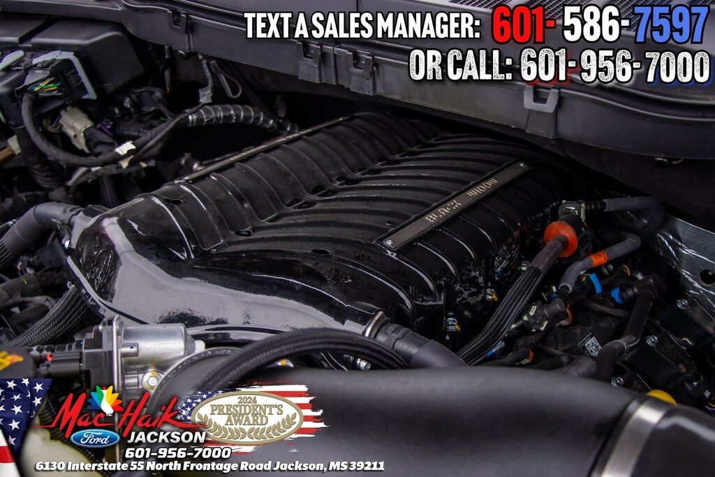 Exclusive Lowered Suspension, 24 Inch Black Wheels, High Performance Tires, Black Widow Red Caliper Covers, Black Widow Fender Vents with Painted Accents, Performance Exhaust with Black Tips, Manual Retractable Tonneau Cover, Leather Seat Covers with Custom Stitch, Logo Carpeted Floormats, Red LED Interior Lighting, Grille Replacement with Painted Accents, Body Color Front and Rear Bumpers, 710HP Supercharger, Whipple Supercharger And Intake Manifold Powder Coated Black, Performance Aluminum Heat Exchanger, Black Plastic Air Intake Tube, Open Air Performance Intake With High Flow Filter, Upgraded High Performance Spark Plugs, Upgraded High Performance Motor Oil 5w50, Supercharged Badges on Hood, Fuel Door Label - 93 Octane Preferred, 91 Octane Minimum, Black Widow Door Sills, Performance Rear Sway Bar, Black Widow Custom Hood Vents, Front Bumper Splitter, Tailgate Spoiler, Matte Finished Exterior, Deep Tinted Windows (50 States), Black Widow Windshield Header, Black Widow Exterior Badging, FMVSS Compliant, 3 Year / 36,000 Mile Warranty